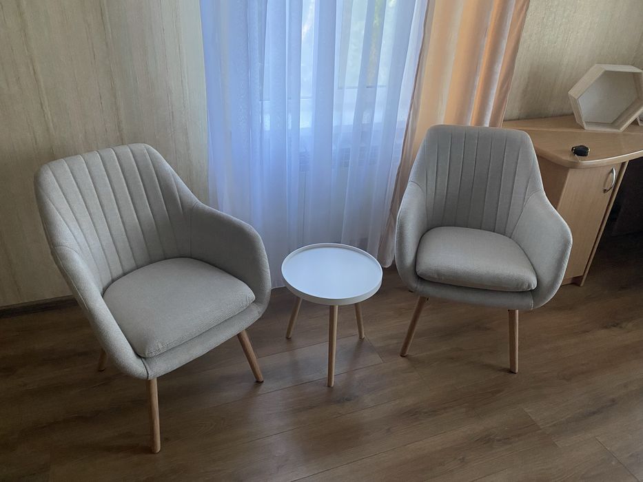 Всі пересувні меблі (стіл, стільці, крісла, кавовий столик, диван та штори нові)