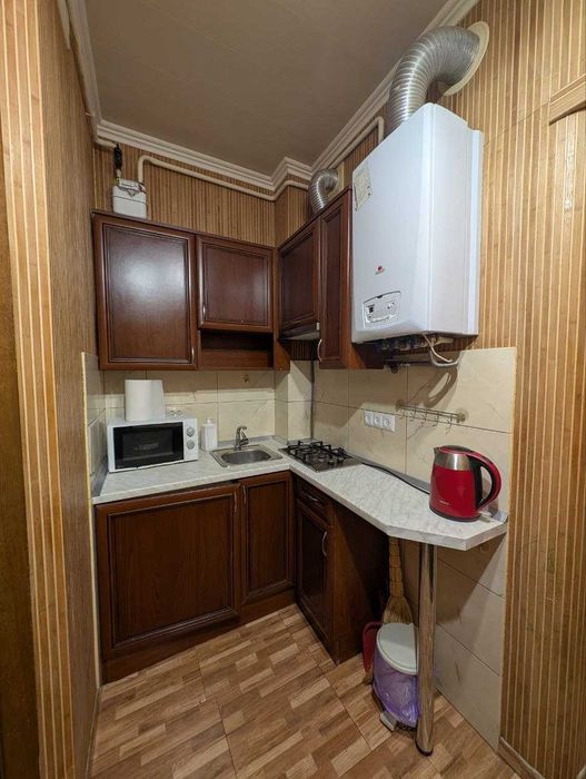 Дво функційний газовий котел (гріє квартиру і воду), тепло підігрів кухні, коридору. душової.