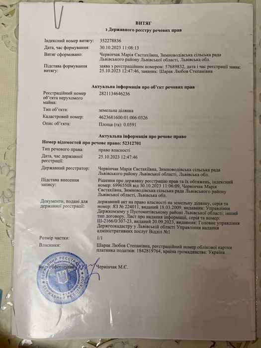 | Земельна ділянка: |
