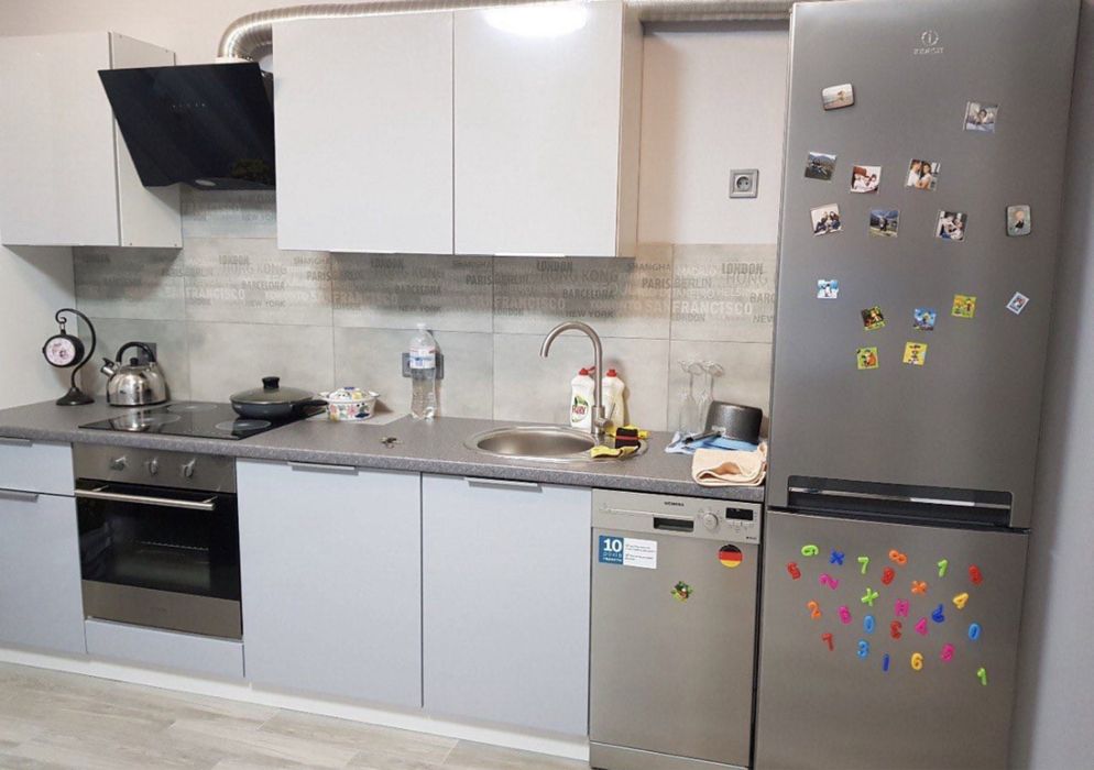 2 санвузла, 2 кондиціонера. 1 кімната вільна від меблів. Посудомійна, пральна, бойлер, ТВ і так далі. Укомплектована квартира в 1 черзі. Всі ремонти зроблені. Тільки довгостроково.