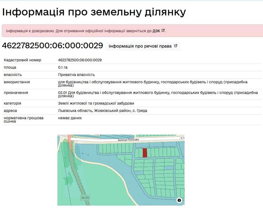 | Земельна ділянка: |