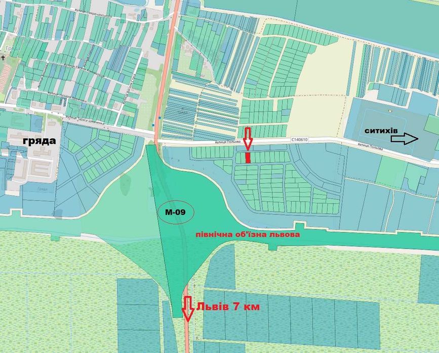 Земельна ділянка для будівництва с. Гряда Львівська ОТГ; Продається земельна ділянка для будівництва і обслуговування житлового будинку с. Гряда Львівська ОТГ. Поруч траса М-09 Львів-Жовква-Рава-Руська та проектована північна об'їзна Львова. Добрий доїзд. Зупинка громадського транспорту в пішій доступності.