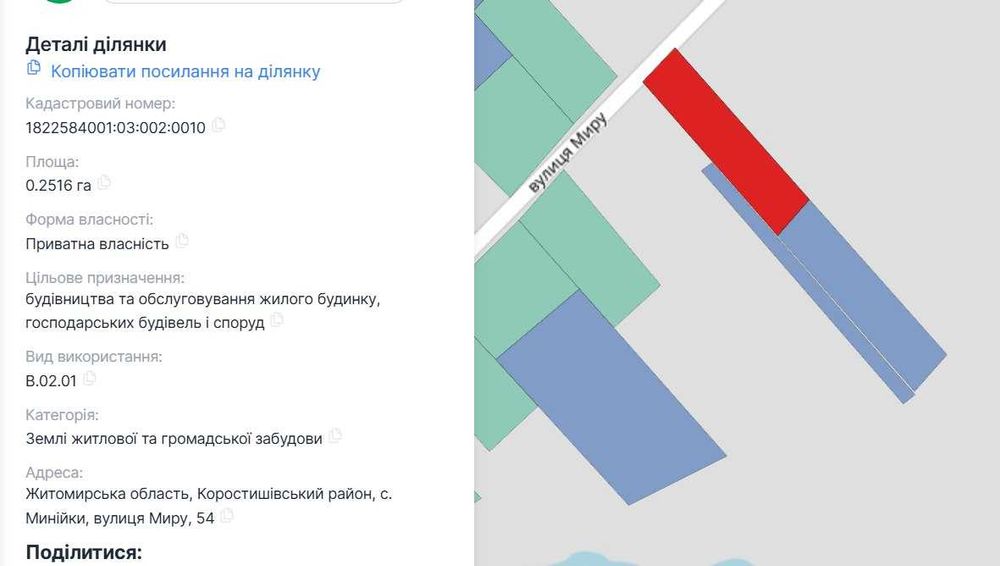 | Земельна ділянка: |