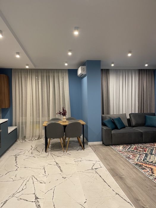 64 квадрата, є окрема спальня, кухня/вітальня, два с/в та гардероб.