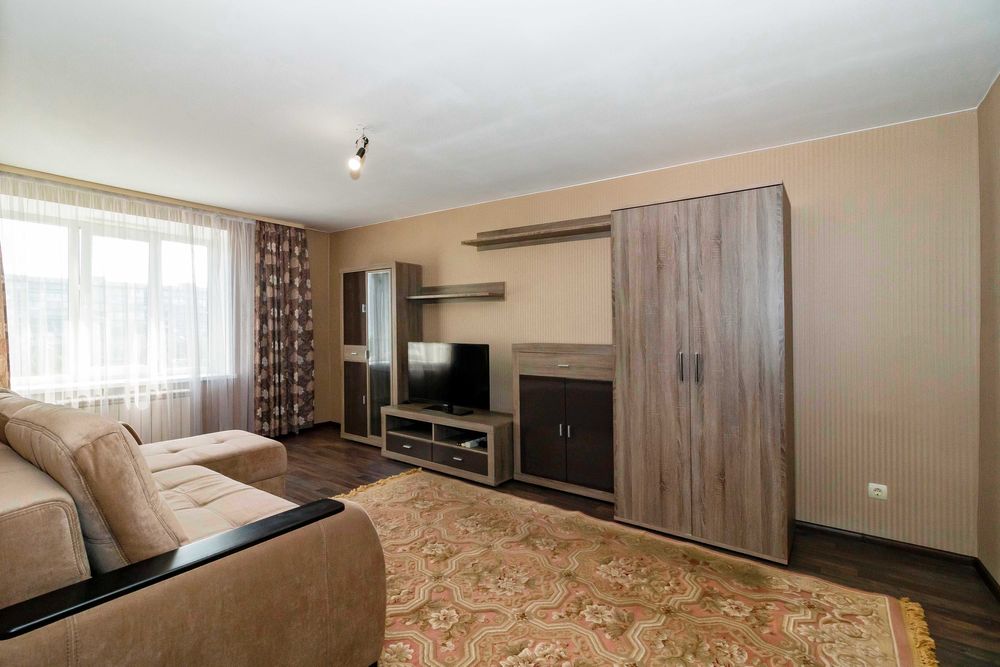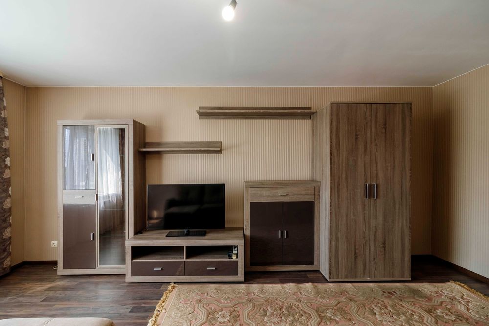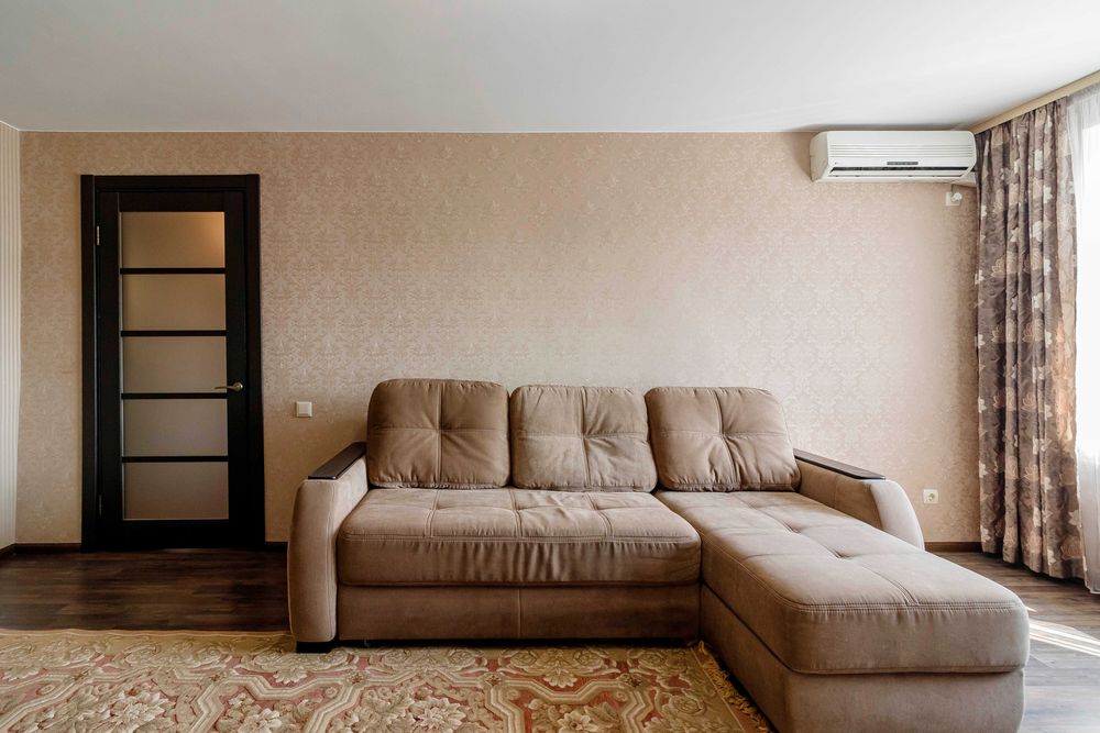 Простора кімната (18м2) з розкладним диваном, телевізором, кондиціонером.