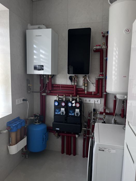 Встановлено газове та електро опалення, опалення каміном на дрова та розводка по кімнатам. Підігрів підлоги 1 поверх повністю, 2 поверх ванна кімната, коридор та три гардеробних кімнати.