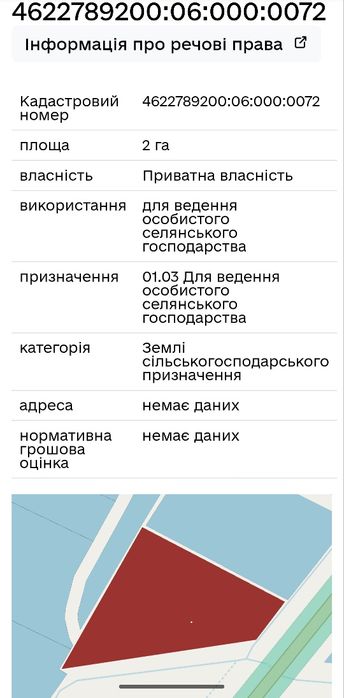| Земельна ділянка: |