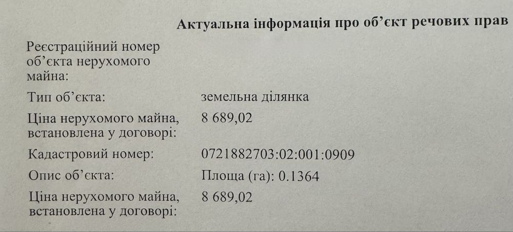 | Земельна ділянка: |