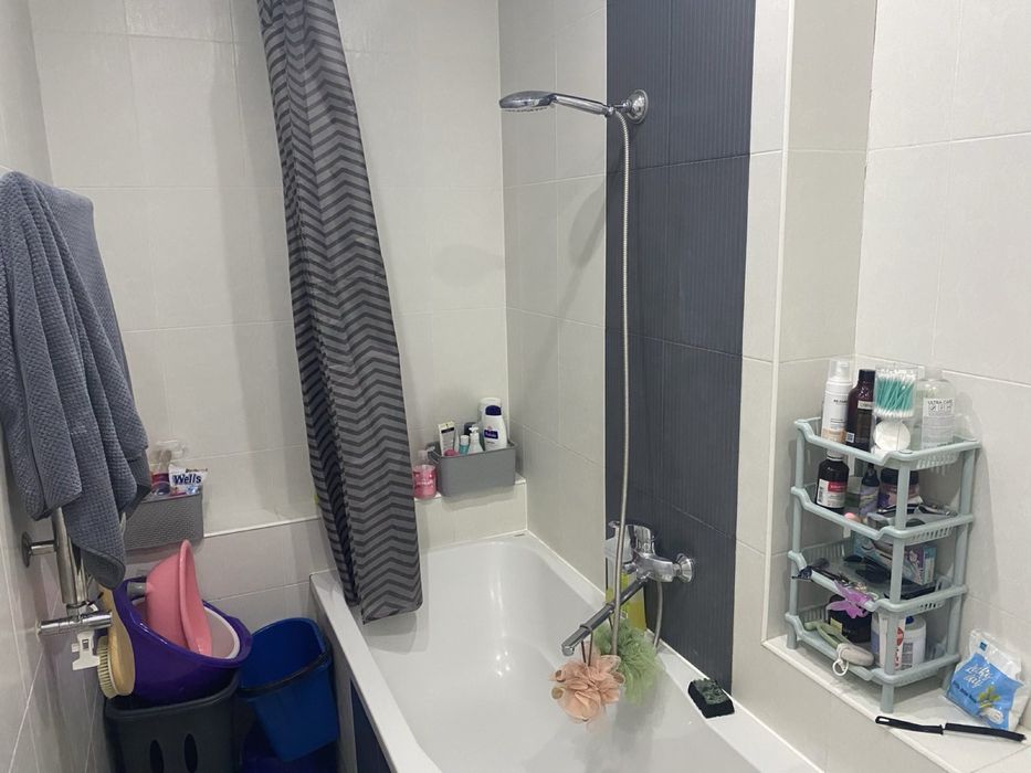 Кухня оснащена варочной поверхностью, духовым шкафом, встроенным холодильником, посудомоечной машиной и вытяжкой. Также в квартире есть кондиционер, стиральная машина и бойлер.