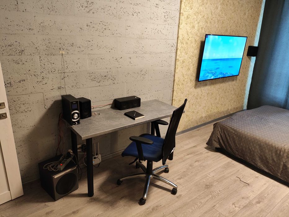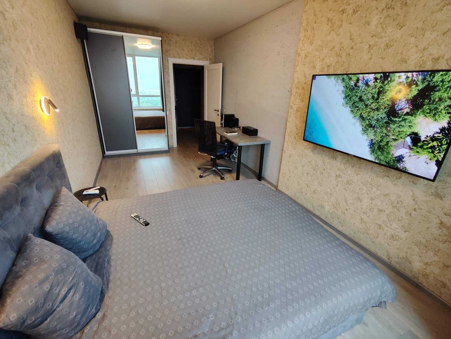 Велике повноцінне 2 спальне ліжко, Робоче місце з ергономічним кріслом, сантехніка Grohe, ванна 180см, сушарка для рушників з таймером, індивідуальні лічильники на опалення, воду, світло. Набір посуду.