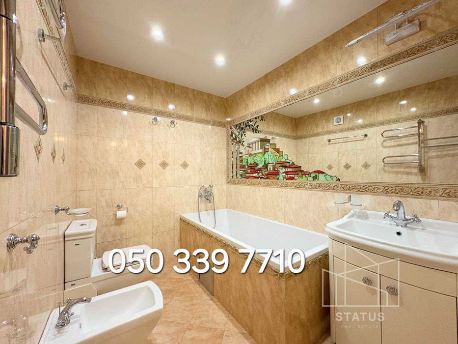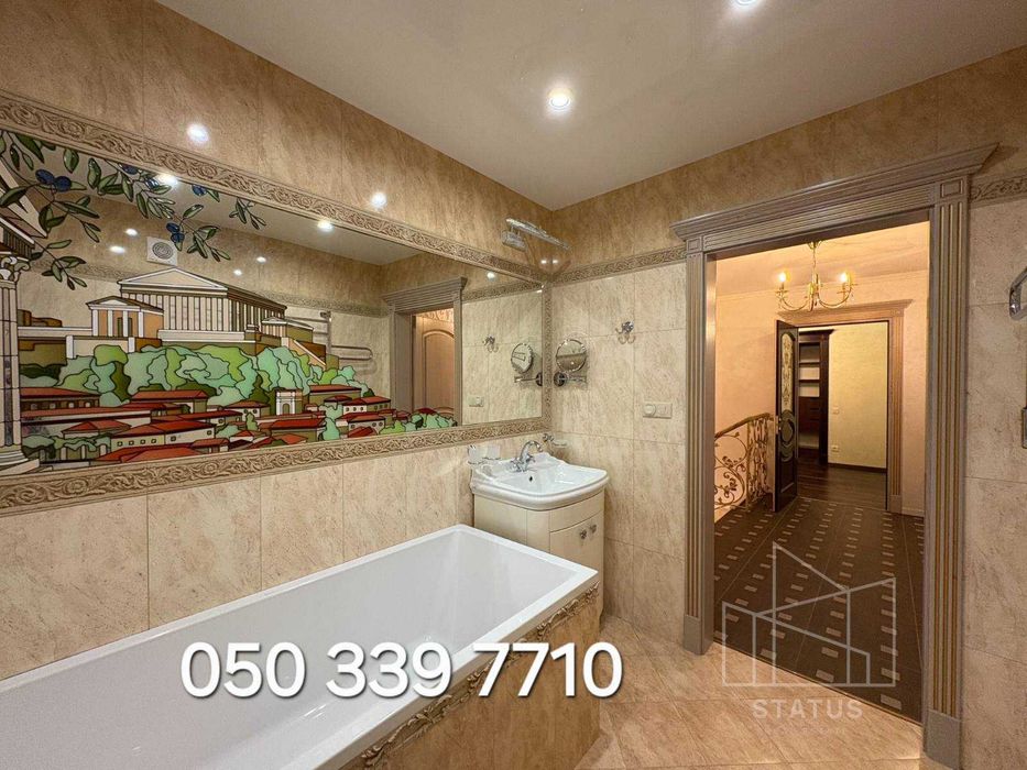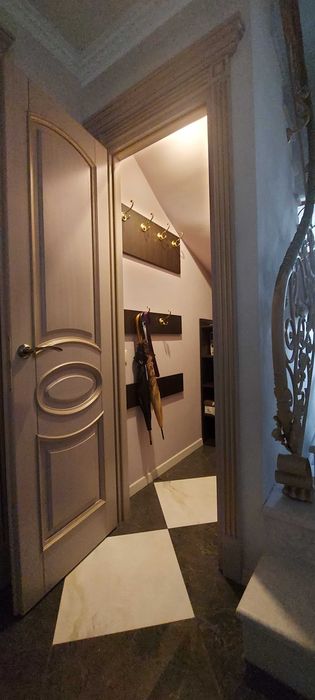-Парковка: у дворі з відеоспостереженням (вільне паркування), місця для зарядки електроавтомобіля, платна парковка з охороною, автомийка. Шикарні сходи рожево-нюдового мармуру в ансамблі з мармуровими панелями на стінах та мармуровими підвіконнями вигідно підкреслені італійською та австрійською декоративною штукатуркою світлих тонів. Гіпсові ажурні панелі та багети справляють враження легкості та елегантності. Кожна кімната має свою індивідуальність, але не вибивається із загального стилю. При виконанні ремонтних робіт використовувалися ли. Столярні вироби виготовлені з дуба. Вбудована кухня з ясеню стільниця з мармуру прикрашає собою простір кухні та поєднану з нею вітальню. Мебльована дерев'яними меблями. Встановлено побутову техніку провідних виробників - плита газова, духовка електрична, посудомийна машина, потужна витяжка, холодильник , бойлер, котел, пральна машина, кондиціонери, телевізори.