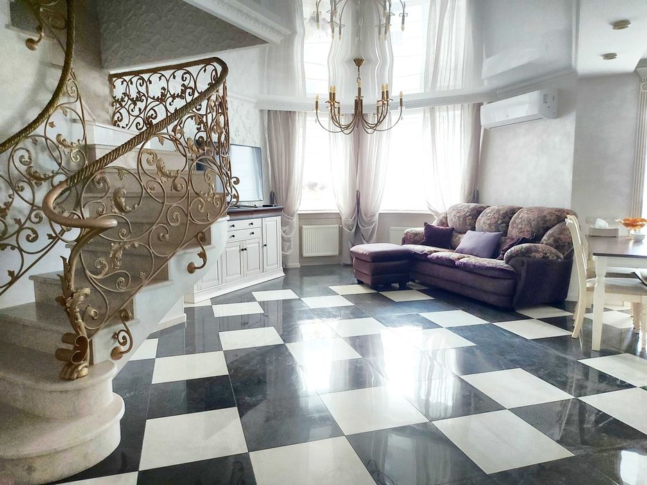 -Парковка: у дворі з відеоспостереженням (вільне паркування), місця для зарядки електроавтомобіля. При виконанні ремонтних робіт використовувалися якісні матеріали. Столярні вироби виготовлені з дуба. Вбудована кухня з ясеню стільниця з мармуру прикрашає собою простір кухні та поєднану з нею вітальню. Встановлено побутову техніку провідних виробників - плита газова, духовка електрична, посудомийна машина, потужна витяжка, 2 холодильника, бойлер, котел, пральна машина, кондиціонери, телевізори.
