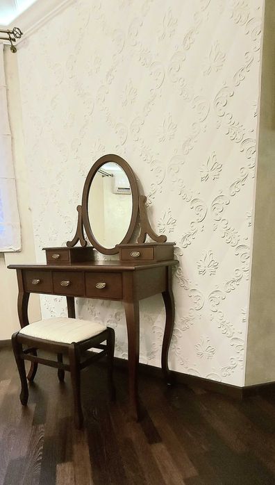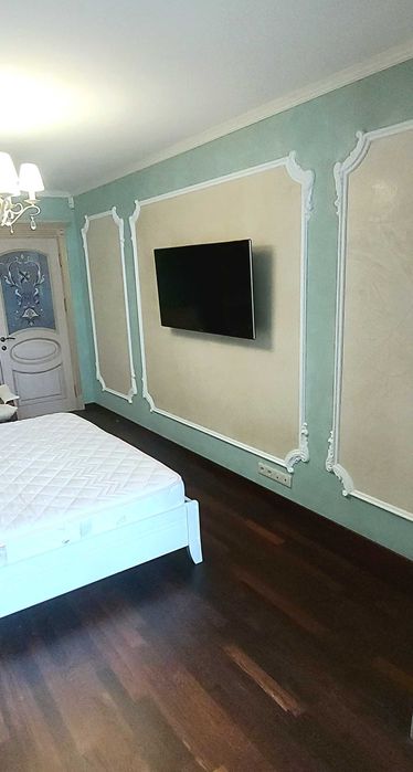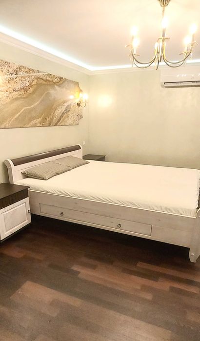 -Парковка: у дворі з відеоспостереженням (вільне паркування), платна парковка з охороною (є своє місце) Шикарні сходи рожево-нюдового мармуру в ансамблі з мармуровими панелями на стінах та мармуровими підвіконнями вигідно підкреслені італійською та австрійською декоративною штукатуркою світлих тонів. Гіпсові ажурні панелі та багети справляють враження легкості та елегантності. Кожна кімната має свою індивідуальність, але не вибивається із загального стилю. При виконанні ремонтних робіт використовувалися лише якісні матеріали, паркетна дошка червоного дерева під воском, мармур, граніт, гіпс, дерево, керамограніт. Мають місце елементи художнього кування та вітражі. Столярні вироби виготовлені з дуба. Вбудована кухня з ясеню зі стільницею з мармуру прикрашає собою простір кухні та поєднану з нею вітальню. Мебльована дерев'яними меблями. Встановлено побутову техніку провідних виробників - плита газова, духовка електрична, посудомийна машина, потужна витяжка, холодильник , бойлер, котел. У квартирі встановлені пральна машина, кондиціонери-теплові насоси СН до -30С у кожній кімнаті.
