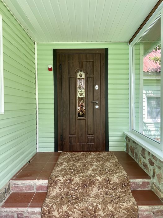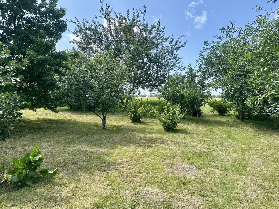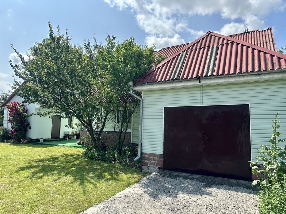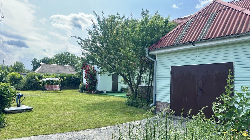 48 соток: широкий фасад, під’їзд асфальтований, доглянута територія. Окремий будинок – літня кухня, тех.. приміщення (сарай), сухий погріб, гараж, центральне водопостачання, сад з плодовими деревами та кущами, літній душ, літній туалет.