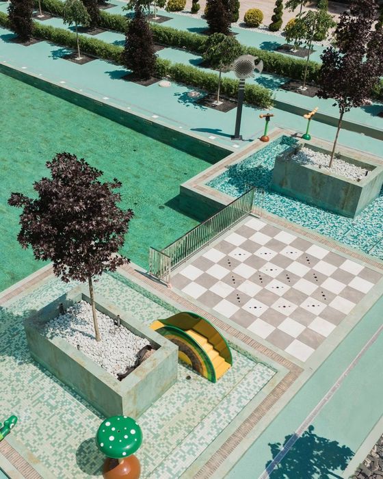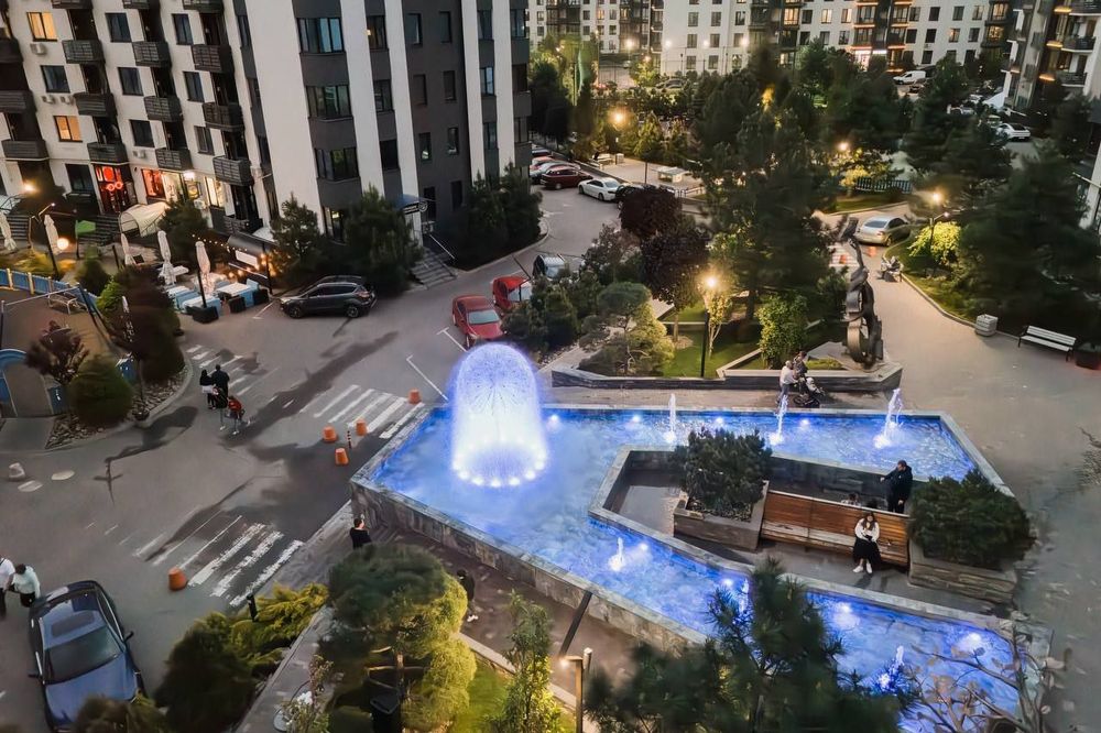 5. Красивий ландшафт: два фонтани з підсвічуванням; безліч скверів з декоративними соснами, ялинками, кленами, квітами;