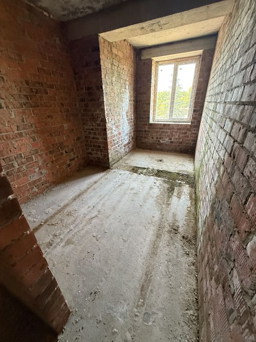 Квартира на етапі завершення будівництва — вже встановлені металопластикові вікна, підведено електрику, тривають роботи по фасаду.