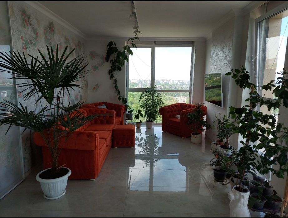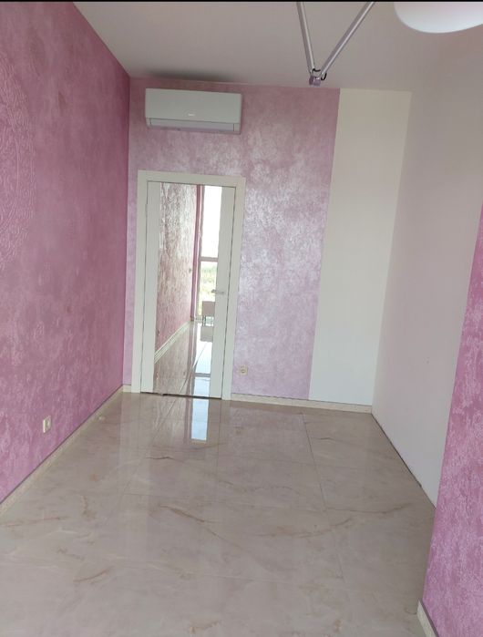 Квартира спланована у велику зручну кухню-студію, кабінет, спальню – житловою площею: 55,04 м2; два санвузла. Ремонт зроблений із якісних матеріалів. Робоча поверхня на кухнi, обiднiй стіл, стільниця у ванній - з натурального кварцу. Усі стіни – декоративна штукатурка. Вся площа підлоги у квартирі - керамогранiт.