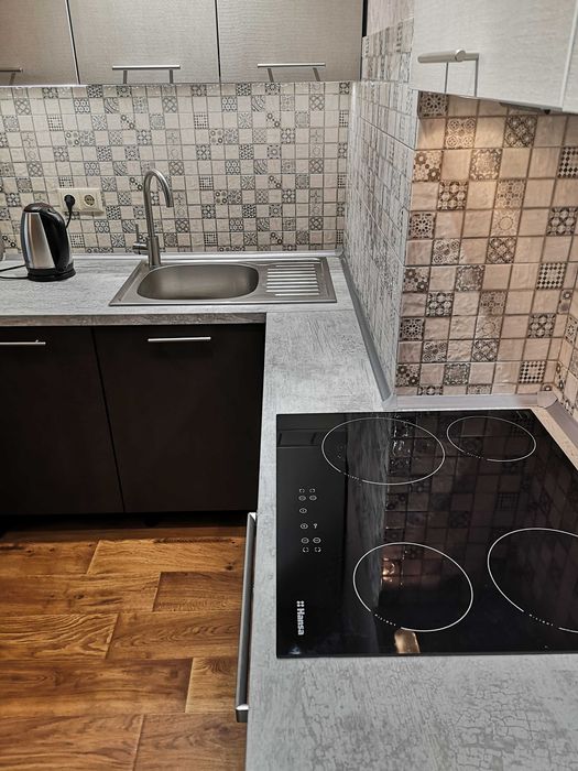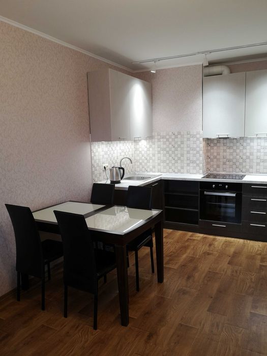 Голосіївський; Оренда євродвушка, 49 м2, провулок Ясинуватський, 11, м. Деміївська; Здається велика однокімнатна квартира площею 48,6 м² у ЖК пров. Ясинуватський, 11. Євродвушка! Видова, високий 15 поверх 25-поверхового нового утепленого будинку. Сучасний ремонт, обладнана всією необхідною технікою: бойлер, духова шафа, плита, мікрохвильова піч, холодильник, ТВ, 2 кондиціонера.