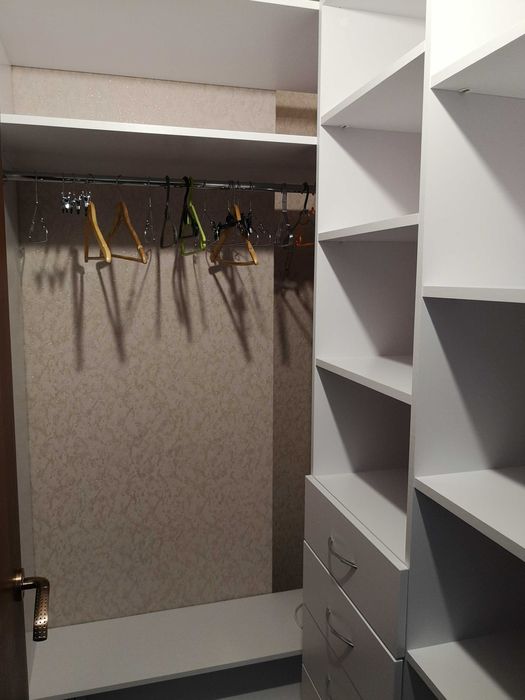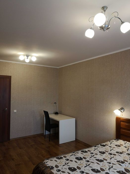 Зонування: передпокій, гардероб, великий санвузол з душовою кабіною, спальня + кабінет (17,6 м²), кухня-вітальня (17,6 м²), незасклена лоджія. Двоспальне ліжко з ортопедичним матрацом, якісний диван, чудово обладнана кухня та інші необхідні меблі.