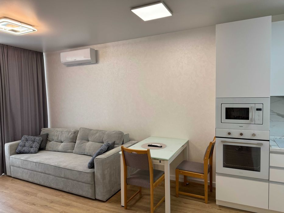Подільський; Без комісії! Оренда 1-кімнатної (євродвушка) ЖК Варшавский Плюс; Довгострокова оренда 1-кімнатної (євродвушка) ЖК Варшавский Плюс. Поруч Ретровіль та вся необхідна інфраструктура, зручне транспортне сполучення до метро і на автомобілі. Квартира укомплектована усіма необхідними меблями та технікою: розкладний диван, двоспальне ліжко з ортопедичним матрацом, шафи-купе, пральна машинка, посудомийна машина, бойлер, варильна поверхня, витяжка, духова піч, холодильник, мікрохвильова піч, кондиціонер, телевізор. Лоджію можна використовувати як кабінет. У ванній кімнаті тепла підлога. Квартира світла, тепла, гарний вид з вікон. У дворі на власній закритій території сучасний дитячий майданчик, спортивний майданчик, місця для відпочинку, цілодобова охорона. В будинку та поруч розташовані кафе, піцерія, салони краси, магазини. На будинок встановлений генератор, що забезпечує роботу ліфтів, опалення, водопостачання у разі відключення електропостачання. Ціна 27000+комунальні послуги. Пропозиція від власника, без комісії. Торг можливий.