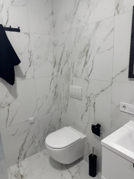 Ванна кімната :4,2 м.кв. Стіни та підлога керамограніт ,підлога з підігрівом,тепла стіна ,підвісний унітаз ,підвісний умивальник .