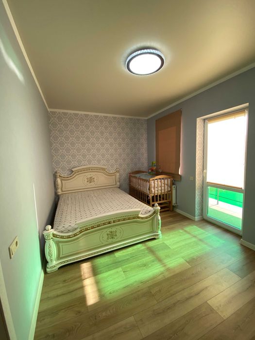 На другому поверсі: дві просторі спальні кімнати з виходом на балкон, містка гардеробна і ще один санвузол.