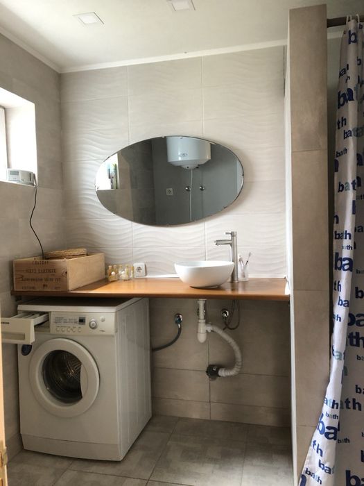Про будинок. На першому поверсі знаходиться кухня-студія з каміном, санвузол з душем та пральною машиною, комора .
