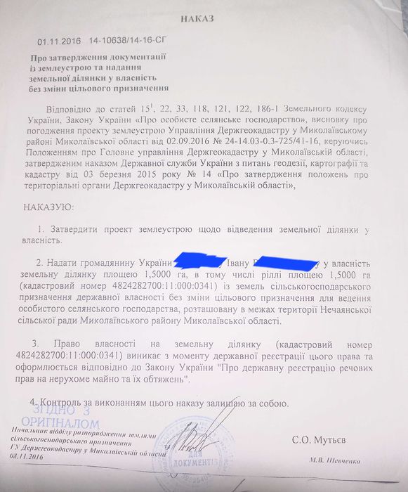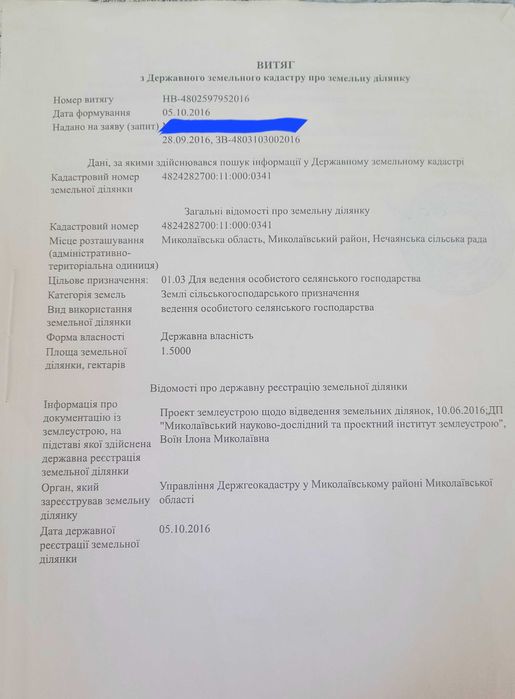 Земля 1,5 га для ведення особистого селянчького господарства; Земля 1.5 га сільськогосподарського призначення. Місце розташування- Миколаївська обл., Миколаївський р-н, Нечаянська сільська рада