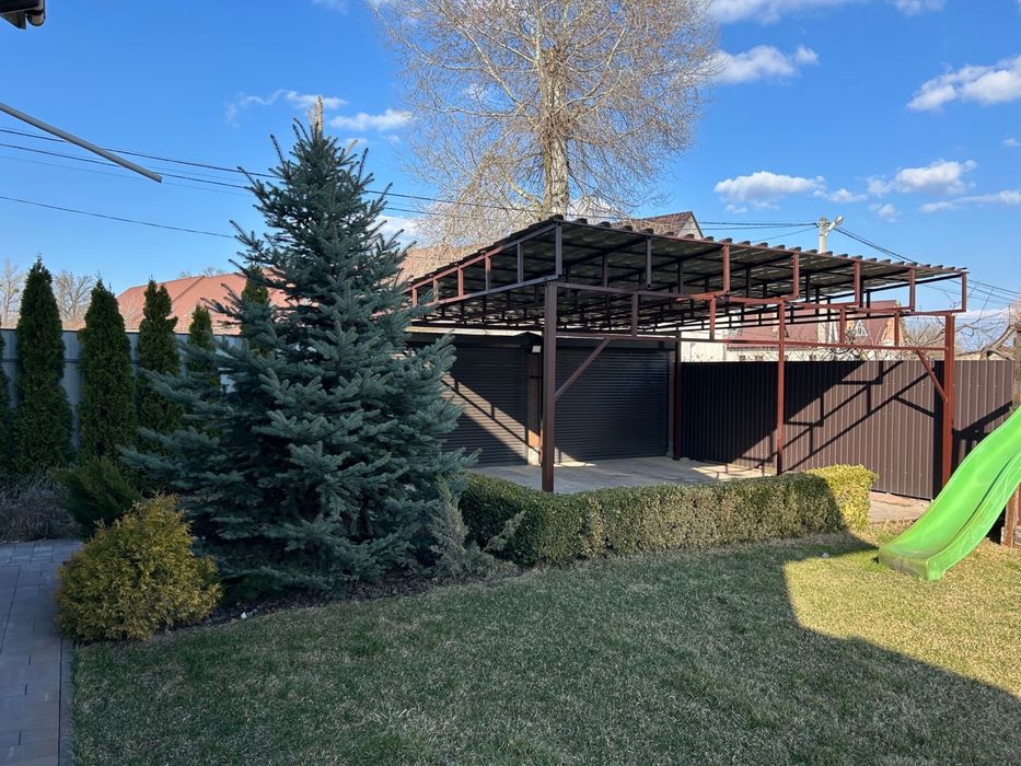 Красивий ландшафт на 6 сотках, місце паркування для 2-х автомобілів з автоматичними воротами та накриттям, дитячий ігровий майданчик, власна мангальна зона, облаштоване місце для барбекю, фруктові дерева, ландшафний дизайн, автополив.