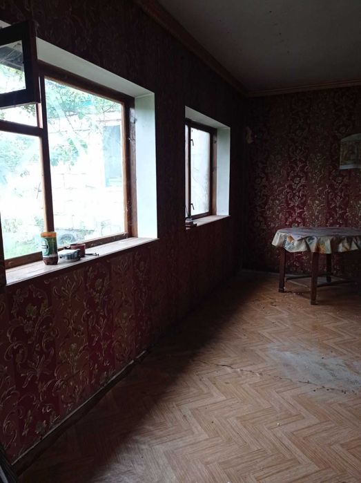 Земельна ділянка та частина будинку; 1/3 частина цегляного будинку (2 комнати) з електроенергією та отоплення пічкою з дровами (є запас дров), не проведена вода та газ, але є свердловина. Цегляний сарай та туалет. Земельна ділянка площею 5 соток та погріб обкладений цеглою (на дворі). На проти будинку знаходиться ставок і завжди чудове, екочисте повітря. Добиратися можна міським громадським транспортом на автобусі № 25; 25а, або приватним авто.
