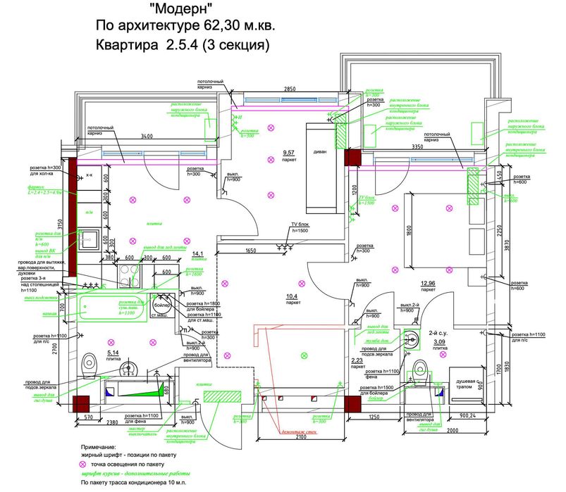 Зроблені виводи під кондиціонери у кожній кімнаті та передпокої.