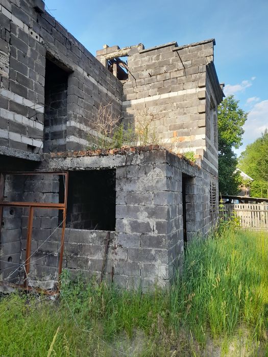 Продається гарна ділянка біля лісу під забудову або під знесення недобудованого будинку. По бажанню можна зробити реконструкцію недобудованого будинку, або просто поставити вагончик на ділянці і насолоджуватися природою.