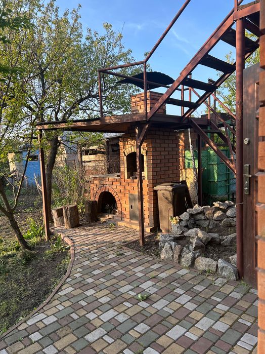 Також на ділянці є велика двоповерхова альтанка. Перший поверх закритий з пластиковими вікнами, другий поверх відкривається на літо. Поруч під навісом стаціонарний мангал.