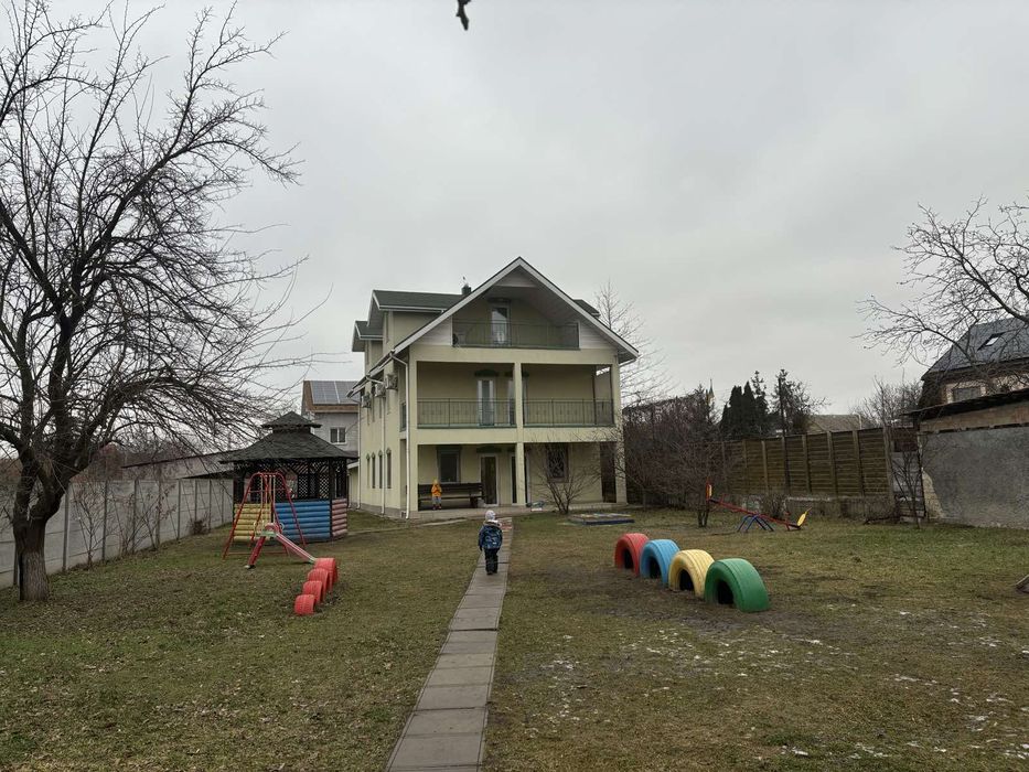 Дарницький; Оренда будинок Осокорки Садова 65; Двоповерховий з мансардою, площ біля 300 кВ.м. Два гаражі. Ділянка 12 соток. Опалення електро (тепла підлога). 4 санвузли, 2 душові кабіни. Будувався як таунхаус. Діючій камін. Скважина. Стоїть на березі озера.