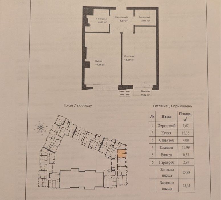 Площа: 43,3 м²