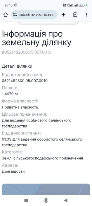 | Земельна ділянка: |