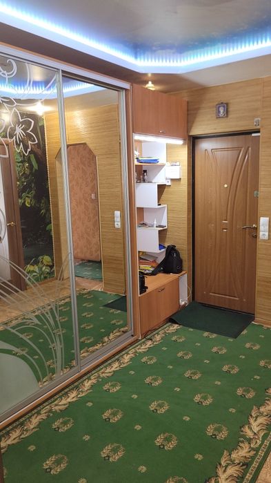 В квартирі нічого робити не треба.В тамбурі маємо своє підсобне приміщення дуже просторне,може використовуватись для збереження консерваціі,так як там прохолодно,так і для велосипедів і колясок.В квартирі зроблено все з полу до потолка,в квартирі два балкони виходять у двір будинка та тильну сторону дома.Дуже затишний район,поруч АТБ,школа,садочок,зупинка тролейбуса та автобуса.Найближче метро Индустриальная.