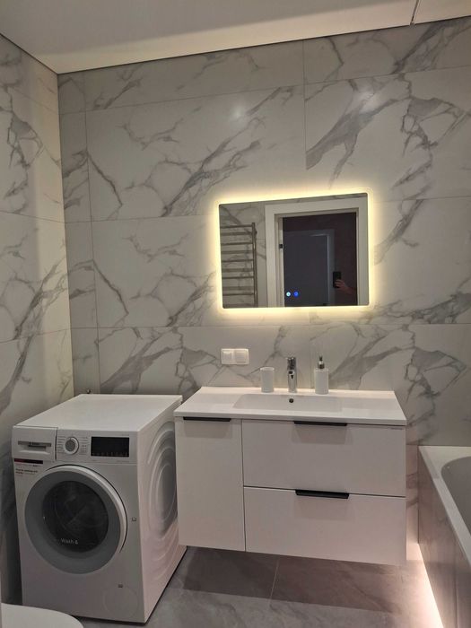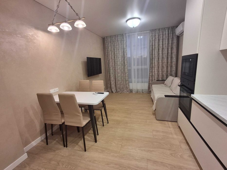 Є зворотній осмом, та вся необхідна техніка, відомих брендів: два кондиціонери, холодильник, бойлер 95 л., мікрохвильова, посудомийна машина, прально-сушильна машина, пилосос, телевізор, чайник, індукційна варильна поверхня і духова.