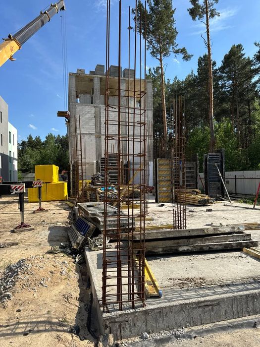Фундамент готовий. Виконуються роботи по зведенню каркасу і стін.