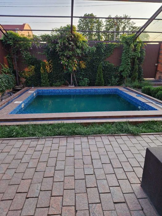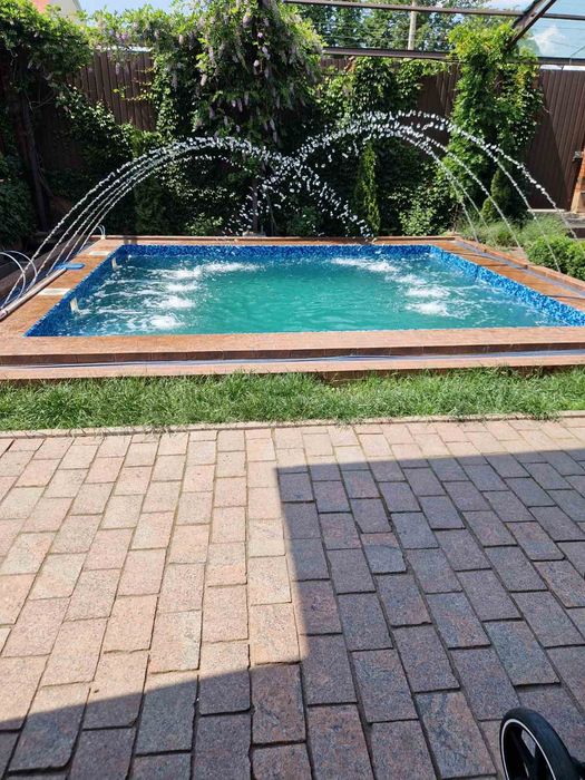 Перед домом расположен шикарный открытый бассейн и открытая тераса. со всем необходимым для комфортного отдыха.Фонтан.