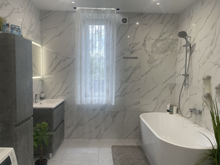 Планировка: просторная кухня-гостинная, 2 спальни, большая светлая ванная комната, коридор, лестница на второй этаж.
