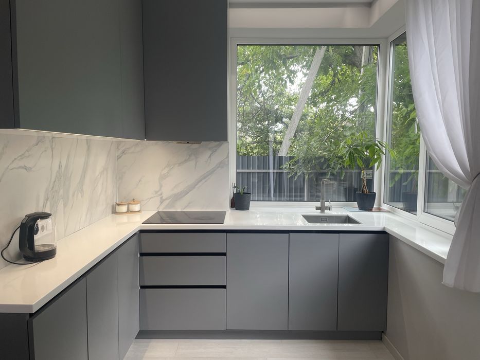 Столешница из искусственного камня со встроенной мойкой.
