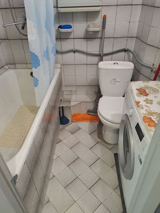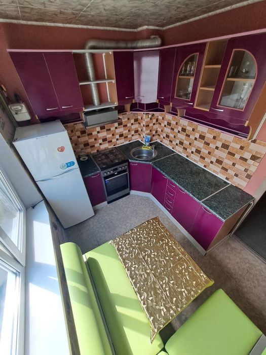 В квартире мягкий уголок(раскладной),кресло раскладное(подросток)камод, компьютерный стол, встроенный шкаф купе в коридоре,смежный санузел, стиральная машина,кухня укомплектована комби плита, холодильник.Счетчики газ, холодная, горячая и электричество.Вся Инфраструктура рядом.Цена 5000+к.п.с счётчиками.
