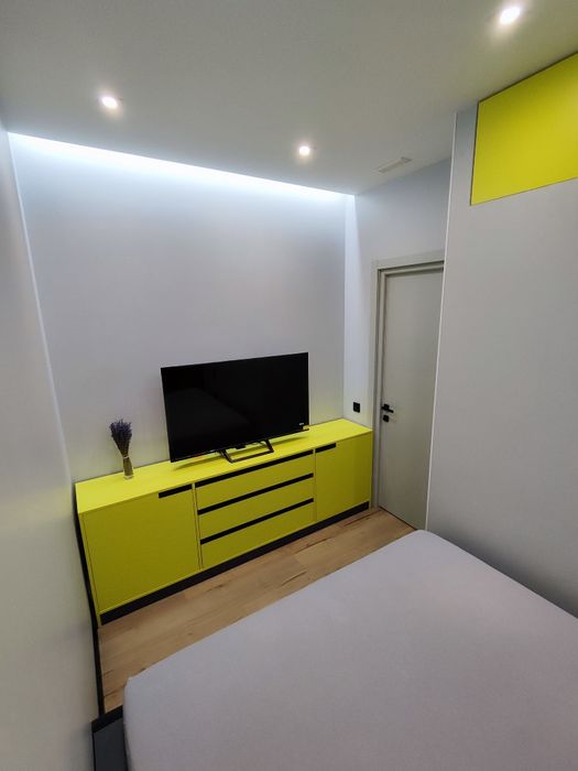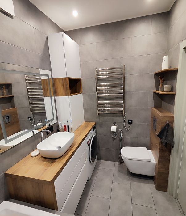 В квартирі виконаний якісний, дизайнерський ремонт. Гіпсокартонна стеля, міжкімнатні перестінки з газобетону, стіни декоративна фарба + фарба, в дитячий кімнаті - грифельна фарба (можна малювати крейдою), на підлозі кахель та ламінат, тепла підлога по всій квартирі, шповані міжкімнатні двері, змішувачі Grohe, сантехніка Vagnerplast/Roca.