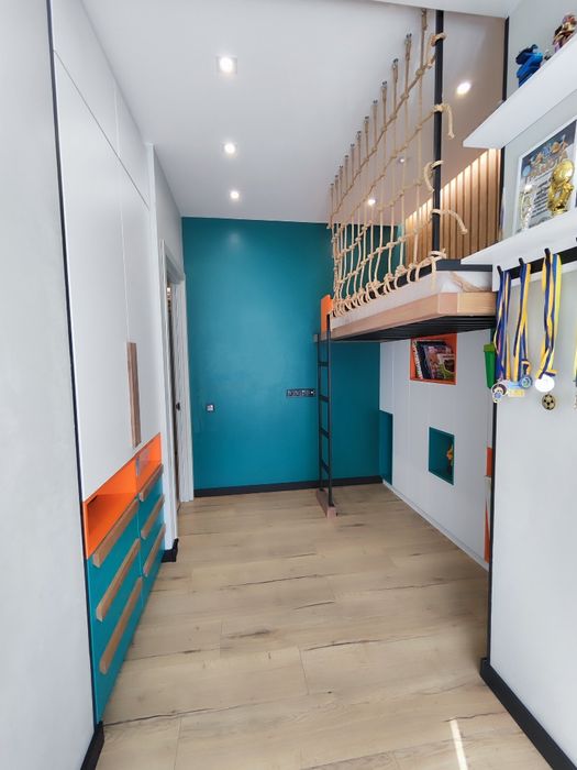 Квартира спланова у кухню-вітальню, повноцінну дитячю кімнату та окрему спальню.