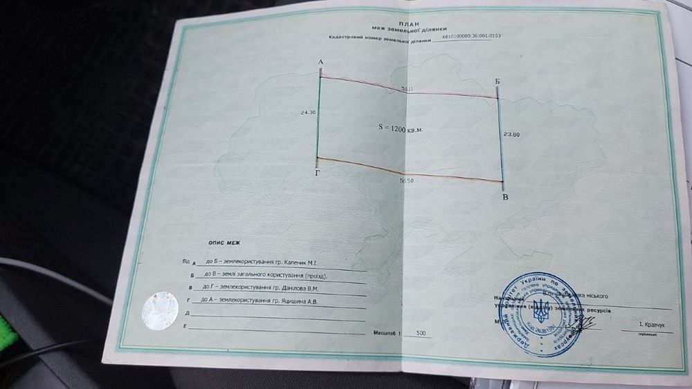 | Земельна ділянка: |