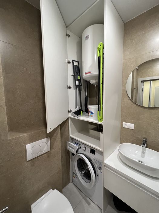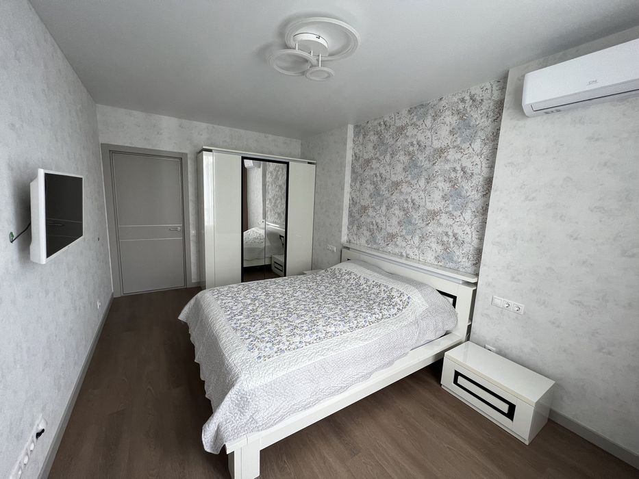 Меблі: великий розкладний диван із нішами для зберігання, 2 шафи, розкладний робочий стіл, обідній стіл, туалетний столик, двоспальне ліжко з ортопедичним матрасом, 2 приліжкові тумби.
