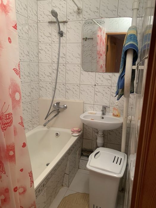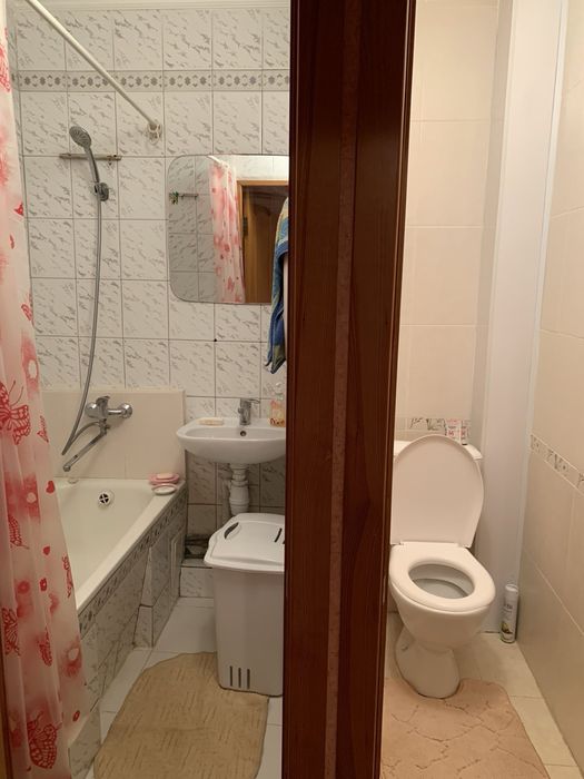 Квартира в хорошем состоянии, есть все для удобства : холодильник , стиральная машина , мебель, кухонный гарнитур , пылесос . В двух комнатах стоят раскладные диваны , санузел раздельный . Есть балкон.