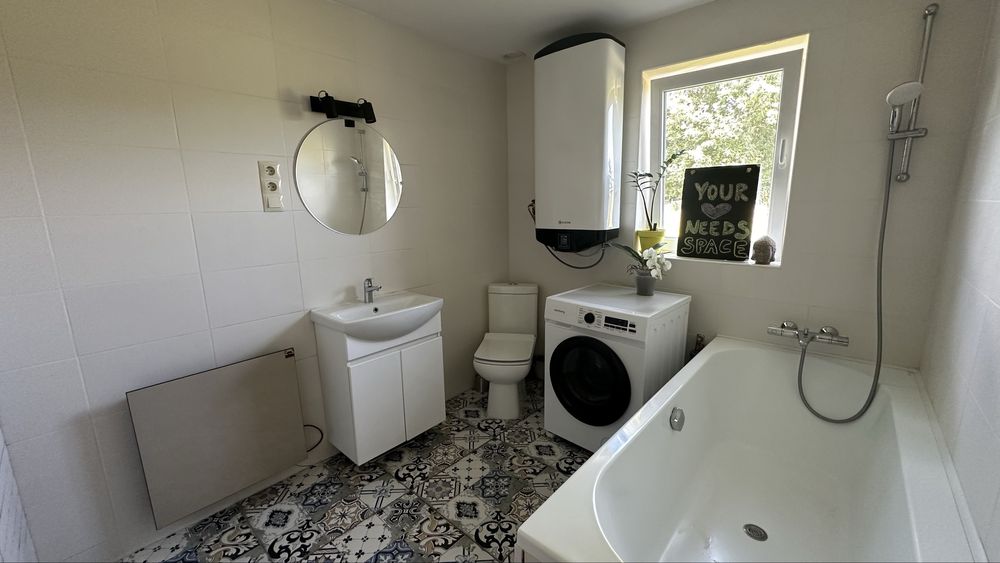 В кожній ванній є бойлер, не підключений до сонячних панелей - це економить електрику, а при відключенні можна митись вже раніше нагрітою водою.