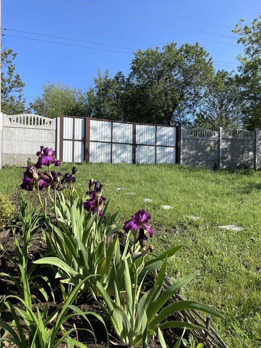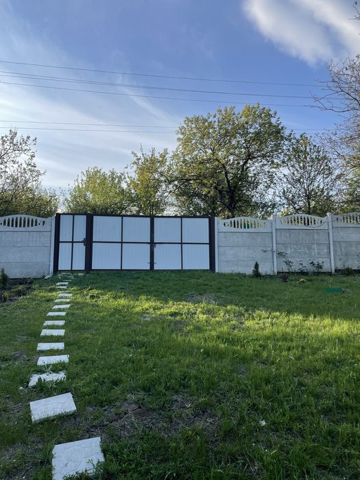 - Огороджена: фасад - бетонний паркан з воротами і хвірткою з профнастилу, решта - сітка-рабиця